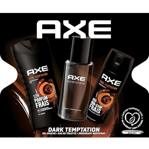 AXE - Coffret Dark Temptation - 1 eau de toilette de 100ml + 1 déodorant bodyspray de 200ml + 1 gel douche de 250ml - Parfum chocolat gourmand pendant 48h