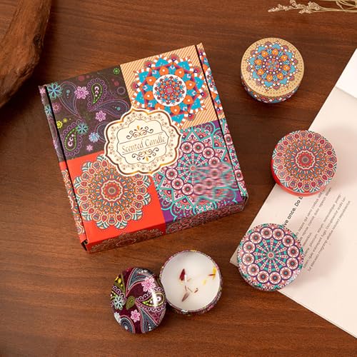 6 PCS Kit Bougie Parfumée Aromathérapie - Coffret Cadeau Femme, Décoration Maison Naturelle pour Bain/Yoga/Mariage/Jardin (4 Modèles-C)