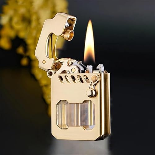 Briquet au kérosène - Design rétro en métal - Allumage à bras basculant - Réservoir d'huile transparent - Idéal pour barbecue, bougies, activités de plein air, coffret cadeau inclus