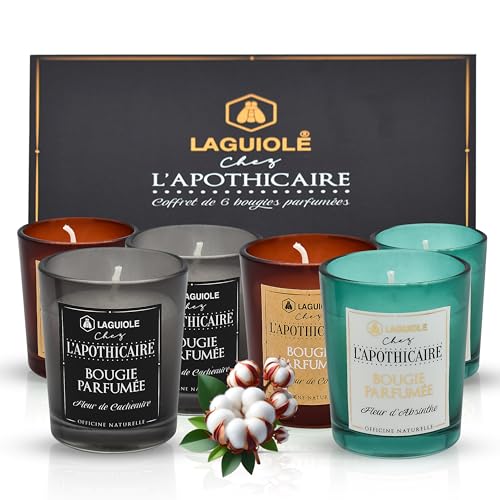 LAGUIOLE Coffret 6 Bougies Parfumées – Cadeau Noël Femme – Bougies de Soja Naturelles Longue Durée 50H – Parfums Whisky, Vanille, Rhum – Décoration Maison, Aromathérapie Relaxante & Bien-Être