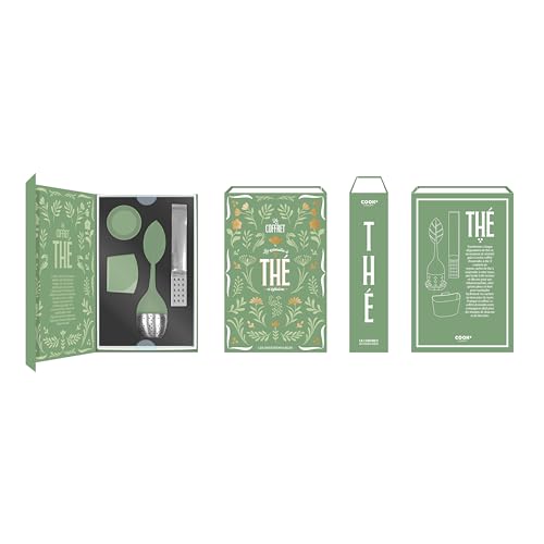 COOK CONCEPT - KA0688 - Coffret de Préparation de Thé Élégant avec Pince à Thé et Infuseur en Silicone - Accessoires Pratiques pour Amateurs de Thé en Vrac - Acier Inoxydable - Vert - Taille Unique