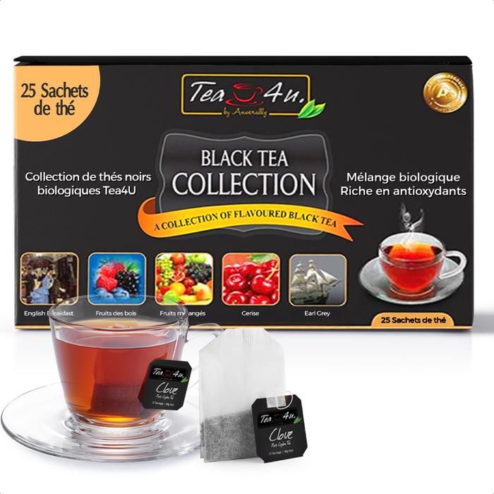 Tea4USA - Coffret de Thé Noir Aromatisé - Sélection Premium de 5 Mélanges Classiques et Fruités - 25 Sachets Fraîcheur