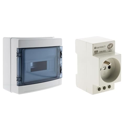 Zenitech - Coffret Électrique Étanche IP65 8 Modules Métal avec Accessoires pour Extension Extérieure Abri Piscine Atelier + Prise Modulaire 2P+T 16A NF pour Tableau Électrique Monophasé