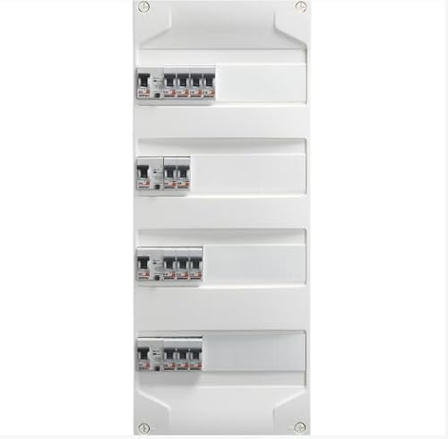 DEBFLEX - Coffret Electrique Pré-Equipé - Tableau Electrique 4 rangées - 4 Interrupteurs Différentiels (3 x 40A type AC + 63A type A) + 12 Disjoncteurs (10/16/20/32A) - Pose en Saillie