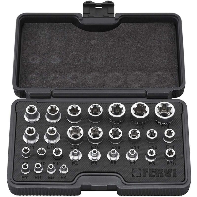 Fervi - coffret de 28 clés douille intérieur torx 1/4' 3/8' 1/2' 0195