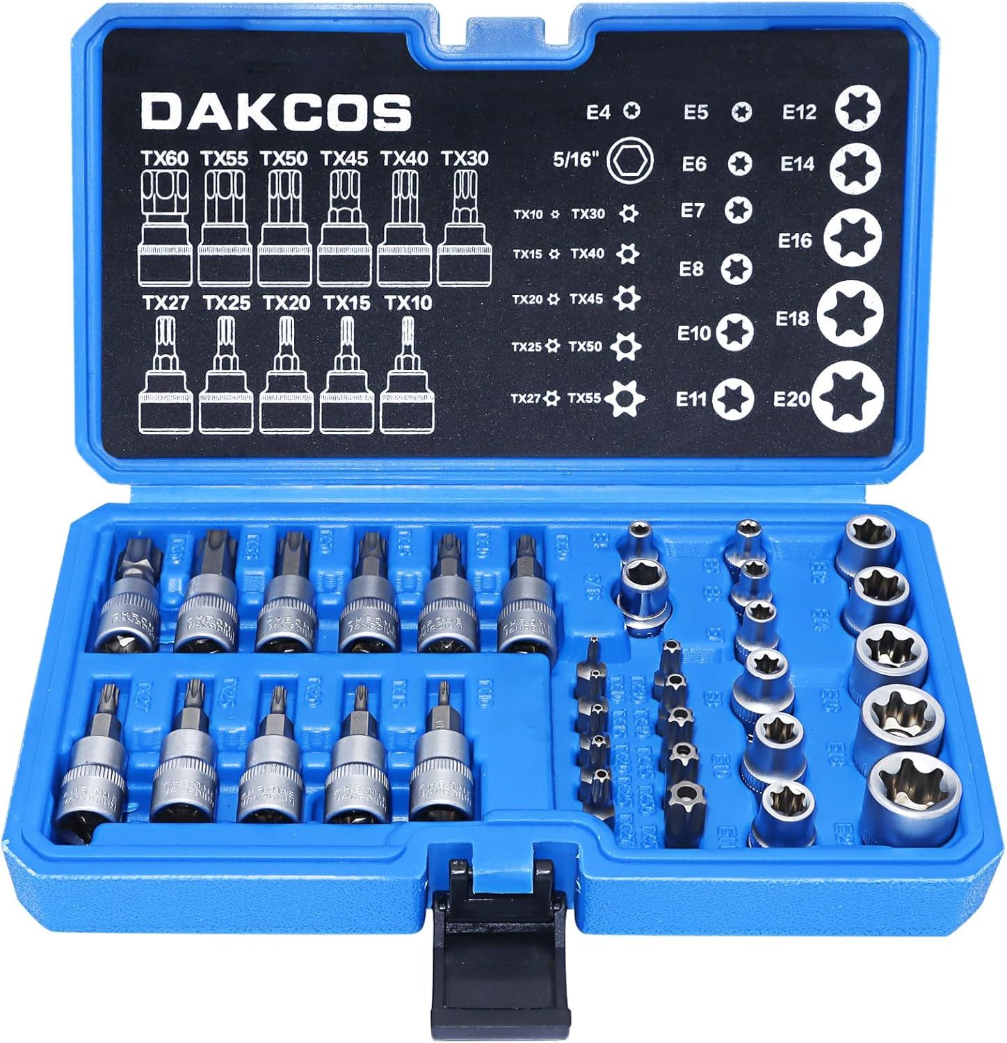 Jeu De 34 Coffret Douilles Torx Femelle E4-E20,Embout Torx Étoilé Profil T10-T60,Adaptateur 3/8'' À 5/16