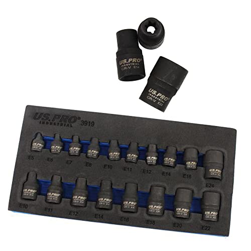 US PRO 1357 Outils 17 pièces E Torx Impact Set E5/e24 Femelle Star Torque Douilles Torque 0,01 V