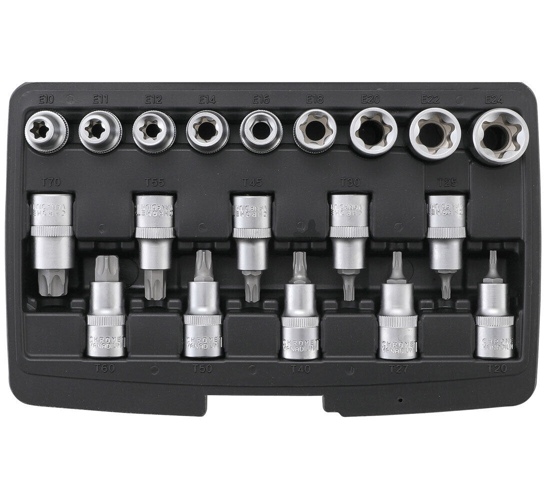 coffret 19 embouts et douilles torx male t20 a t70 femelle e10 a e24 -