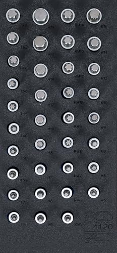 BGS 4120 Insert de servante d’atelier 1/3: Jeu de douilles à embouts carré femelle 12,5 mm (1/2") hexagone femelle, profil T (pour Torx) polygone femelle (pour XZN)profil cannelé (pour RIBE) 36 pièces