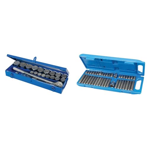 Silverline - Coffret clés et douilles métriques 3/4", 21 pcs (633663), Argent & 881641 - Coffret de 40 Embouts de Vissage - Torx/6 Pans/Spline