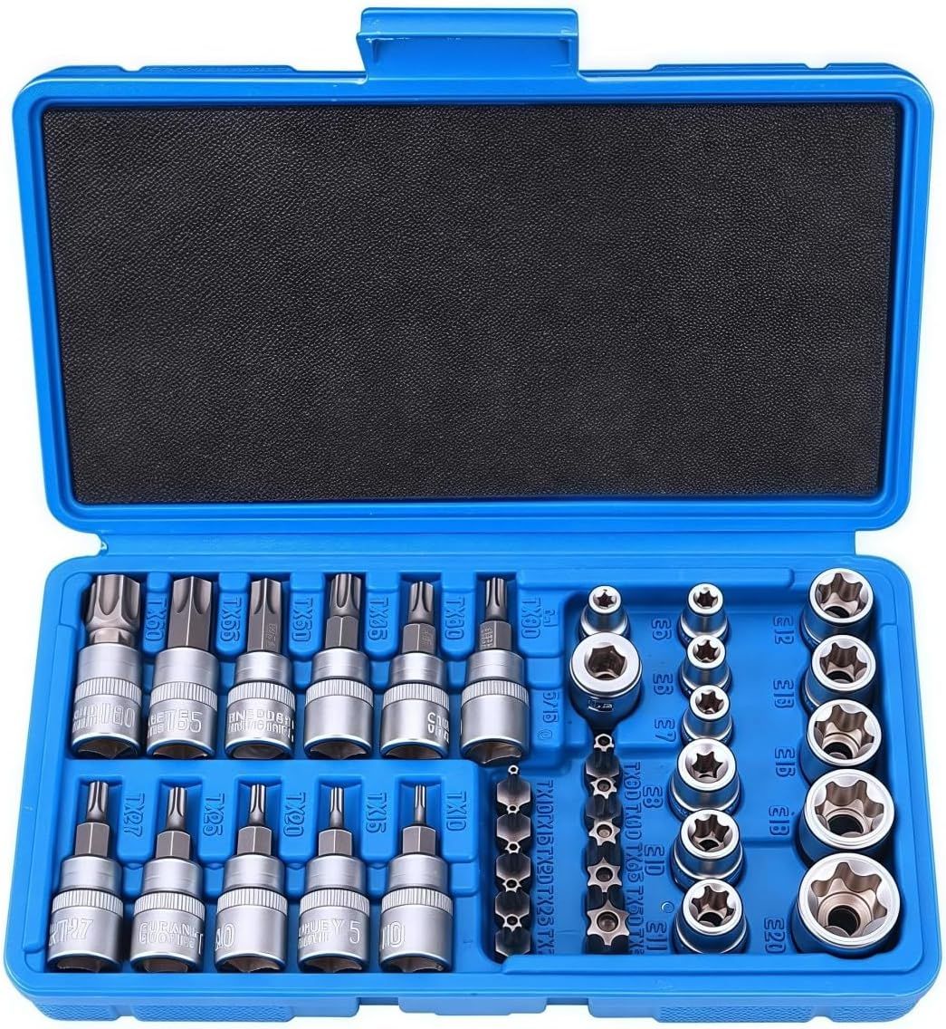 Ensemble De 34 Douilles Torx Robuste,Douille Torx Femelle,Coffret Douille Torx,Embout Torx,Outils Mecanique Automobile