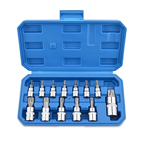 CCLIFE 14 pièces Coffret douilles torx femelle 1/4" 3/8" 1/2", Douille torx profilés E E4-E24