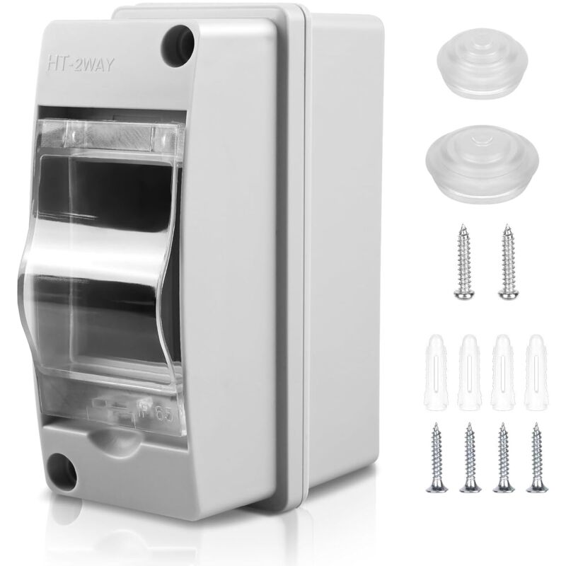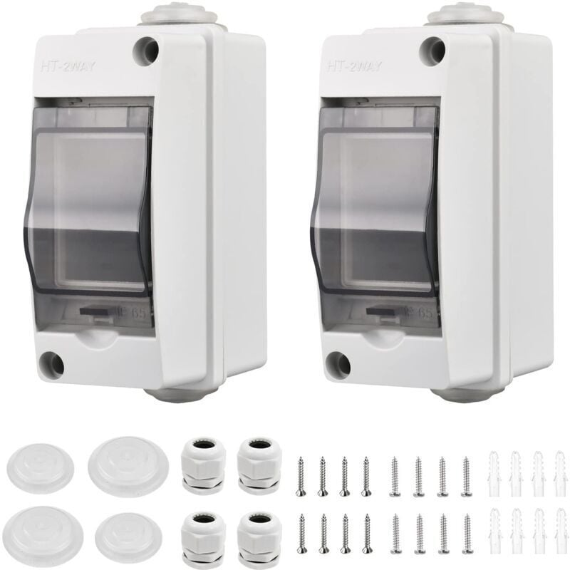 Coffret Electrique Etanche Exterieur IP65, 2 Modules, ABS de Surface en Plastique, Boite de Boitier Etanche Electrique Exterieur, Armoire de