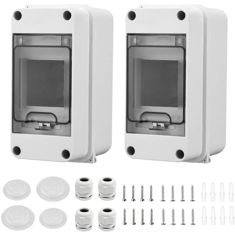 2 Pièces Coffret Electrique Etanche Petit, Coffret Electrique Etanche Exterieur IP65 3 Modules, Avec 2 Connecteurs, pour une Utilisation à