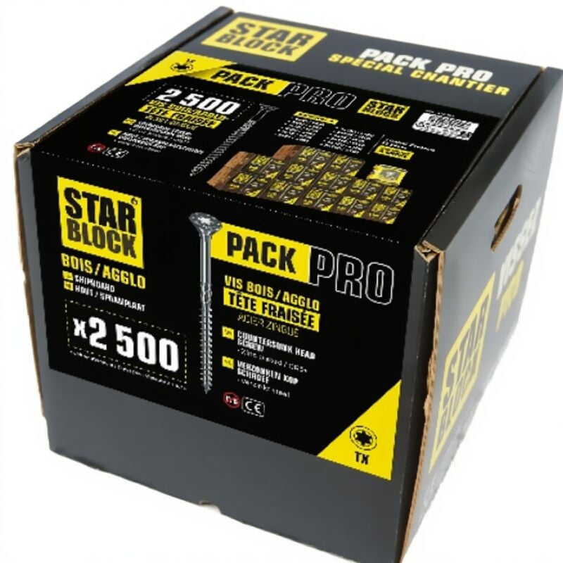 STARBLOCK Coffret de vis Pack Pro 2 500 vis Bois Aggloméré Tête fraisée Torx 12 tailles et 1 Coffret 31 Embouts de vissage