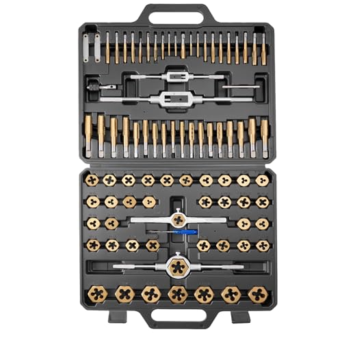 VEVOR Coffret de Tarauds et Filières, 86 Pcs, Kit de Taraudage et Filetage en Acier à Roulement, Métriques M3 à M12 et Tailles SAE, Filetage à Pas Gros et Fin, Tourne-à-gauche, Mallette de Rangement