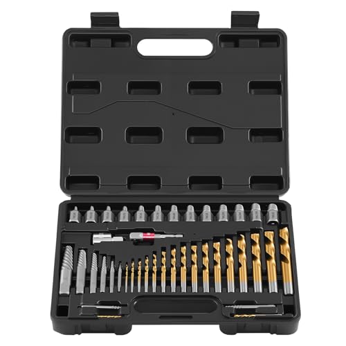 VEVOR Kit Extracteur de Vis Cassée avec Forets 41PCs, Outils d'Extraction de Vis Dénudée et de Goujon, pour Retrait des Boulons Réparation Domicile Atelier, en Acier Cr-Mo, avec Adaptateurs et Coffret