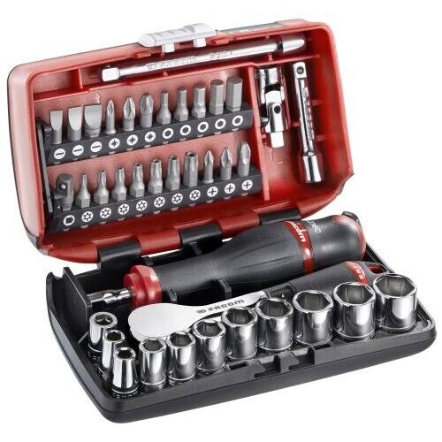 VornixorSarlshopFACOM - Coffret compact de serrage et vissage NANO, 38 pièces, Set de douilles 6 Pans 1/4"" avec Cliquet à manche rotatif, R.360NANOPB