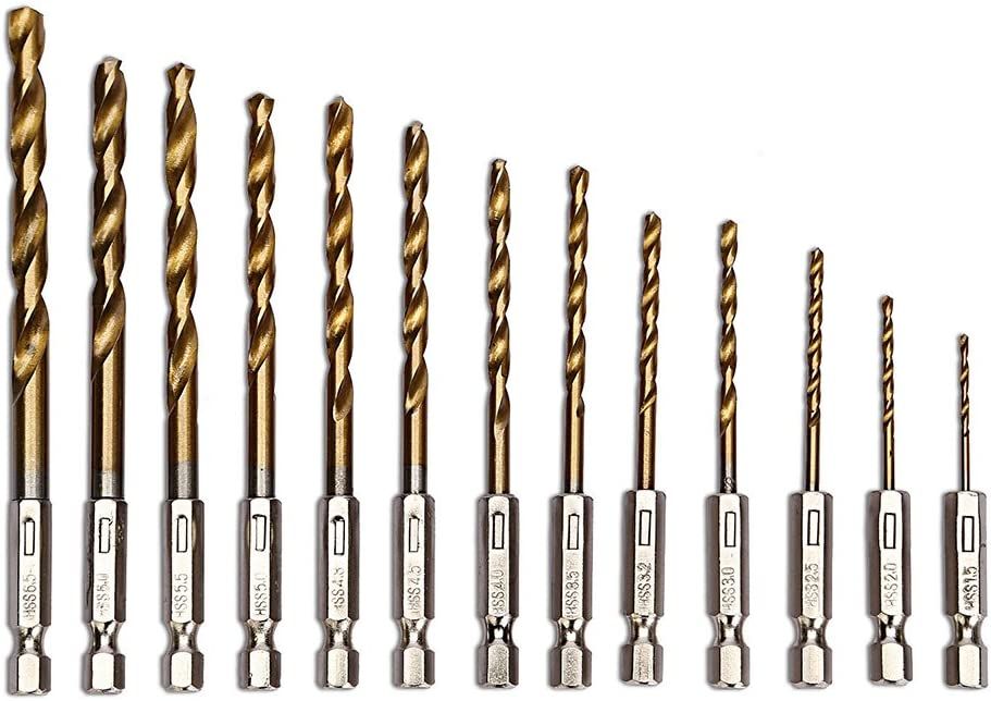 Coffret Foret Hélicoïdal en HSS Mèche à Bois avec Enduit de Titane 1,5-6,5mm 13Pcs