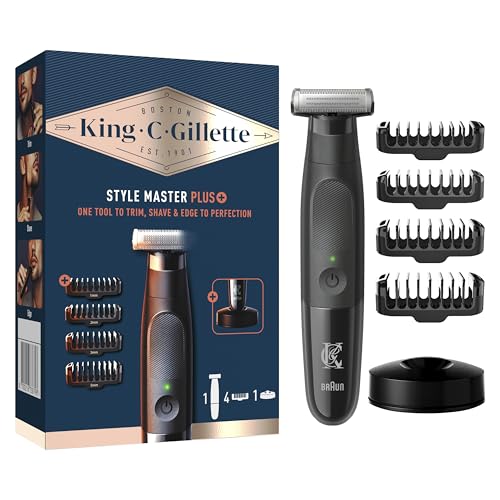 Gillette King C Tondeuse A Barbe Electrique Pour Hommes Style Master Plus, Sans Fil Et Avec Des Lames Affutées, Coffret Barbe Homme Avec 4 Sabots Interchangeables Pour Tailler Et Raser, Etanche