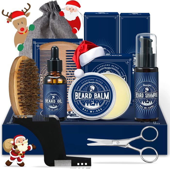Kit Barbe Homme, Beesjuy Coffret Barbe Homme, Cadeau Noel Homme, Entretien Barbe Kit Soins Barbe Pour Hommes Avec Huile, Crème, Shampoing, Brosse à Poils, Peigne, Ciseaux, Peigne de Coiffage
