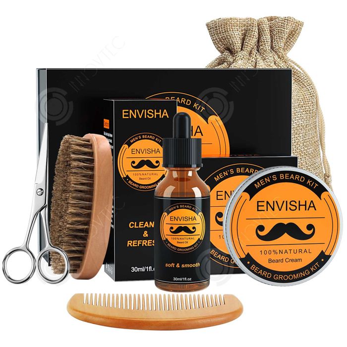 Appareil multifonction de soin INN Kit Barbe Homme 6 pack avec Huile Crèmes de Barbe Brosse à Barbe Ciseaux Kit Entretien Coffret