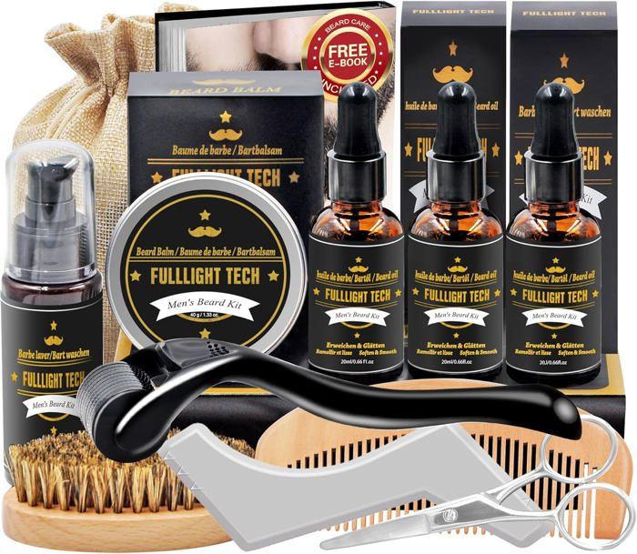 Cadeau Noel HommeKit De Coffret Soin Barbe Homme Complet Produit avec ShampoingHuile BarbePeigneBrosseCiseauxBaume a Barbe