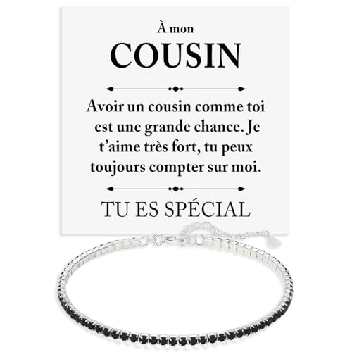 Bracelet Tennis Cousin Argent Sterling 925 Anniversaire Idée Cadeau pour lui, bracelet Homme Or Idée Cadeau Noël - Coffret avec DÉDICACE inclus (Bracelet Cousin Tennis)