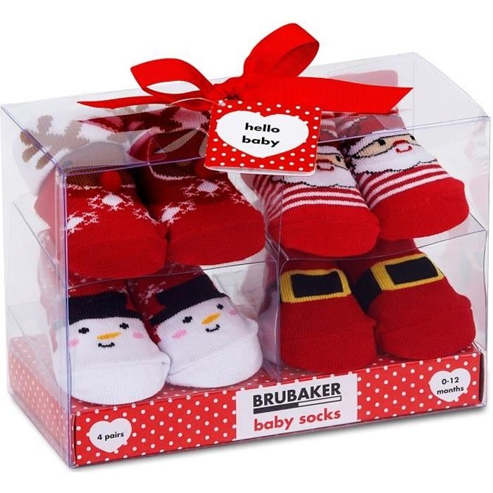 BRUBAKER - Chaussettes bébé - Lot de 4 Paires - Garçon/Fille 0-12 Mois - Coffret cadeau Naissance/Baptême - Noël