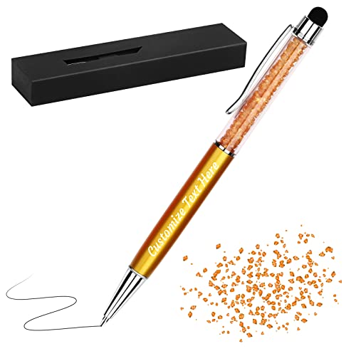 OXYEFEI Stylo Diamant en métal personnalisé + Coffret Cadeau/2 en 1 Stylet/Texte Personnalisable/Cadeau pour Homme & Femme/Cadeau d'anniversaire/Cadeau de Noël (Jaune, 1pcs)