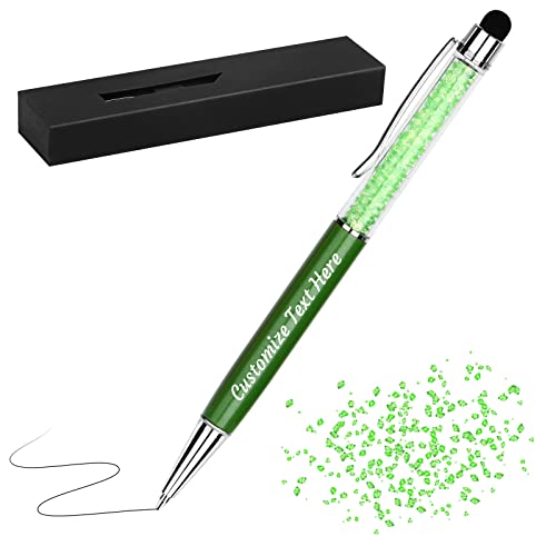 OXYEFEI Stylo Diamant en métal personnalisé + Coffret Cadeau/2 en 1 Stylet/Texte Personnalisable/Cadeau pour Homme & Femme/Cadeau d'anniversaire/Cadeau de Noël (Vert, 1pcs)