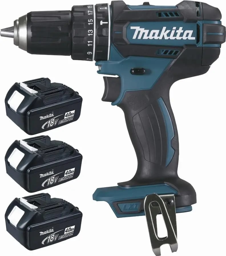 Perceuse visseuse à percussion 18 V Li-Ion 4 Ah Ø 13 mm (3 batteries) MAKITA - 3 batteries, chargeur, coffret - DHP482RM3J