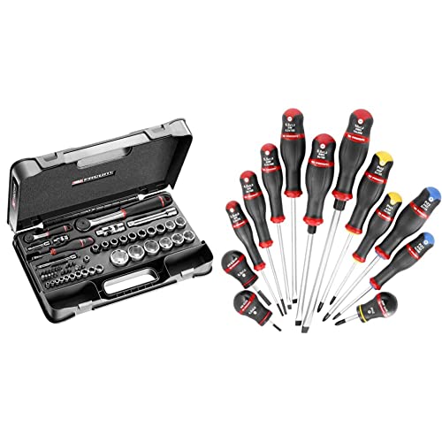 Facom - Coffret à Douille - RS.161-2 - Coffret Outils Complet - 55 Pièces Clés à Douille, 2 Cliquets et 4 Rallonges - Plateau Thermoformé & ATXH.J13 - Jeux de 13 Tournevis ProTwist Pour Vis à Fente