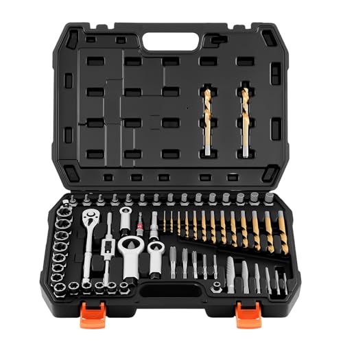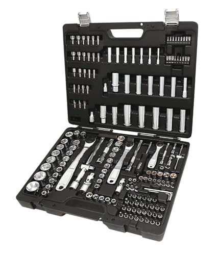 VEVOR Coffret d'Outils de Mécanicien 450PCs avec Embouts, Clés et Accessoires, Kit de Douilles Profondes et Standard à Entraînement 6,4 mm, 9,5 mm et 12,7 mm, SAE et Métrique, pour Réparation Auto