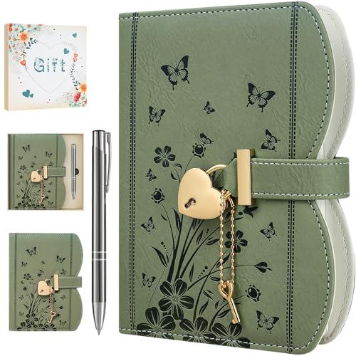 HwxBen Journal intime avec serrure et clés pour filles et femmes, coffret cadeau avec stylo, marque-page et boîte, carnet rechargeable B6 avec 244 pages pour écrire - Vert armée