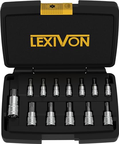 LEXIVON Coffret Douille Torx Male | Set de 13 douille etoile T8 à T60 | Embouts Torx avec entraînement 1/4", 3/8", 1/2" pour clés dynamométriques et perceuses (LX-143)
