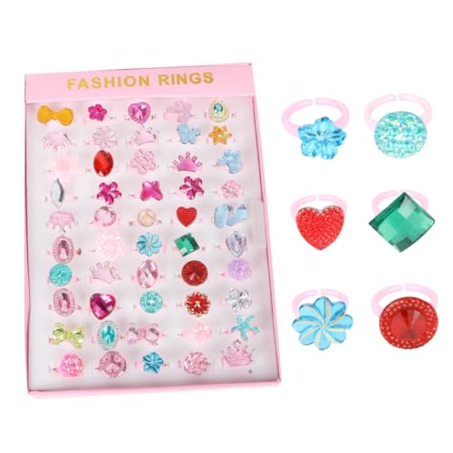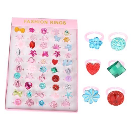 Abaodam 50 Bagues Fantaisie Ajustables pour Garçon et Filles, Anneaux de Dessin Animé Colorés Strass Brillants, Bague pour Filles, Coffret 50 Pièces Fête D’anniversaire et Jeux
