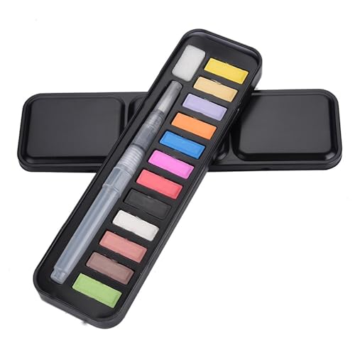 ZIXINNKC Coffret de peinture aquarelle solide, pigment soluble, pinceau pour dessin et peinture. (12 couleurs)