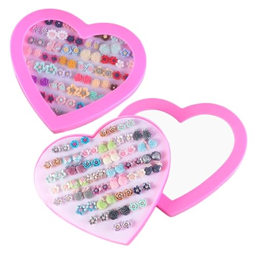JOINPAYA Boucles D’oreilles Fantaisie 36 Paires en Plastique Motif Dessin Animé Cœur et Fleurs, Légères et Colorées, pour Femme, Coffret Présent, Accessoire Quotidien et Fête