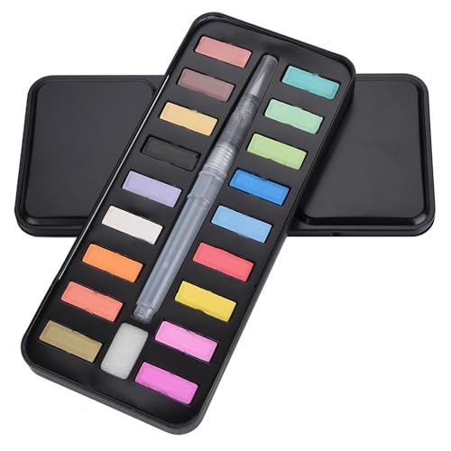 ZIXINNKC Coffret de peinture aquarelle solide, pigment soluble, pinceau pour dessin et peinture. (24 couleurs)