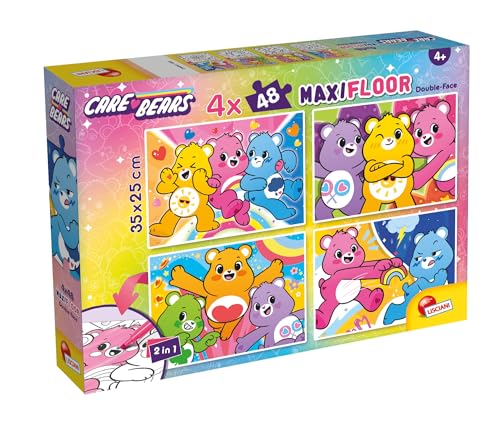 Lisciani - Care Bears - Puzzle Educatif pour Enfants dès 4 Ans - Coffret 4 x 48 Pièces Double Face à Colorier - Format 35 x 25 cm - Activité Créative Dessin Animé Bisounours - Motricité Fine