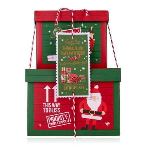 Coffret de bain Accentra HELLO WINTER en coffret cadeau, gel douche, crème pour les mains et crème pour les ongles, 2 bombes de bain, 6 mini limes à ongles, éponge en maille, cadeau femme Noël