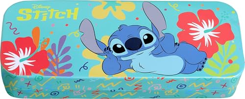 Stitch Boîte de beauté à 3 niveaux pour enfant avec vernis à ongles, autocollants, ombre à paupières et brillants à lèvres dans un coffret en métal