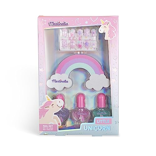 Martinelia Mini Set Manucure Enfant Licorne - Coffret Manucure de 3 Vernis à Ongles Pailletés, Autocollants Licorne, Lime à Ongles et Faux Ongles - Mini Vernis à l'eau pour Enfants Non Toxique