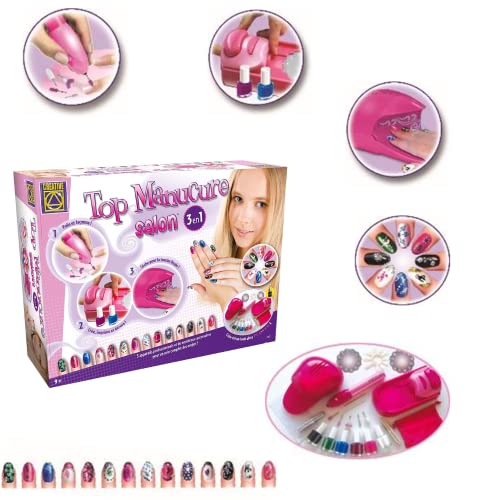 BSM Creative - Top Manucure Salon 3 en 1 - Jouet créatif pour enfant - Studio à ongles pour enfant - Vernie, Paillettes, faux ongles inclus dans ce coffret créatif - CT6112