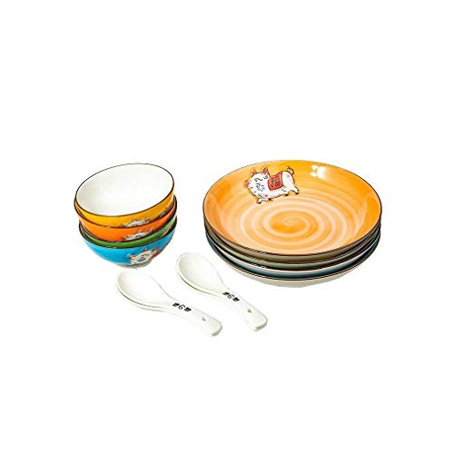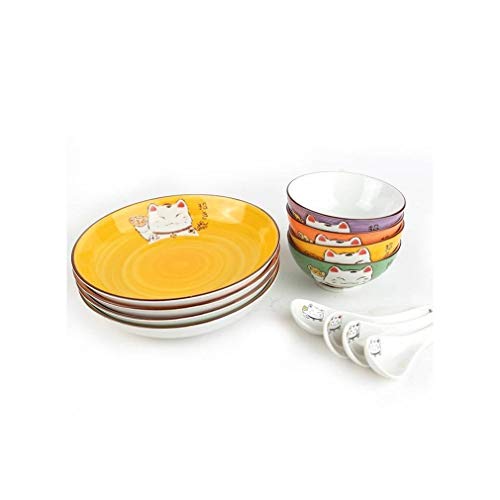 lachineuse - Coffret Repas Japonais - Design Maneki Neko - Pour 4 Personnes - Bols, Assiettes et Cuillères - Décoration Japonaise - Idée Cadeau Japon Asie