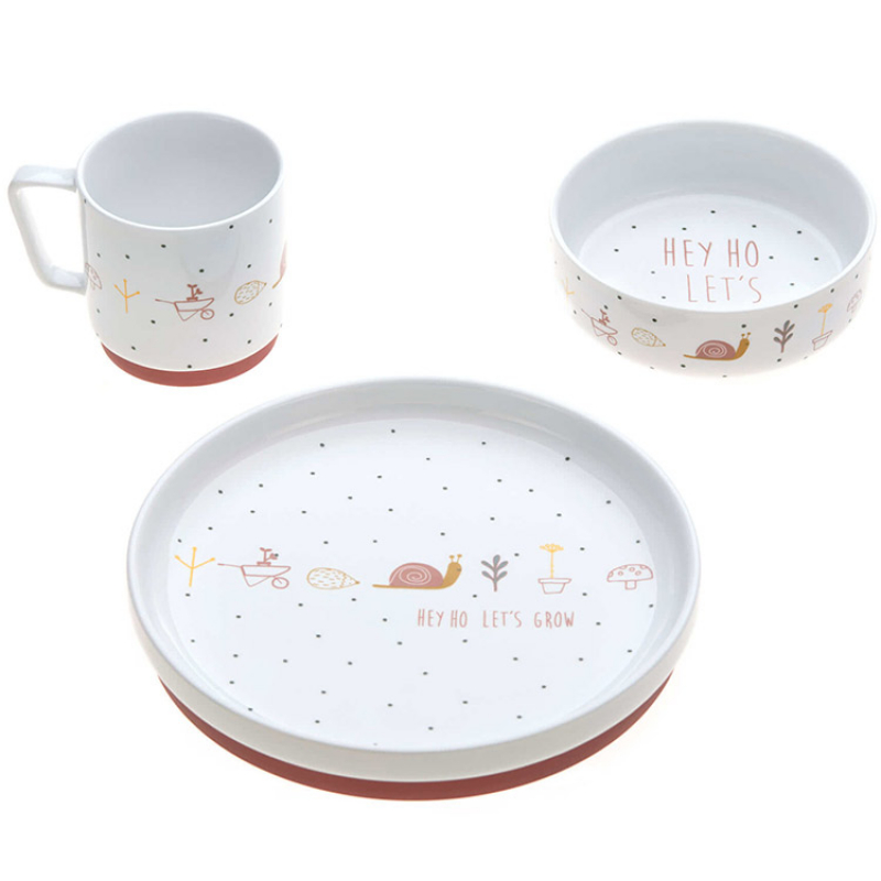 Coffret repas en porcelaine rose Garden Explorer (3 pièces)