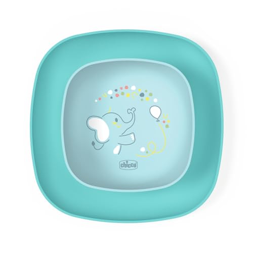 Chicco Coffret Repas pour Enfants, 2 Assiettes réutilisables pour Bébé,1 Creuse et 1 Plate,Base et Poignées Latérales Antidérapantes,Prise Érgonomique,Repose-Cuillère, Accessoire de Repas,dès 12 Mois