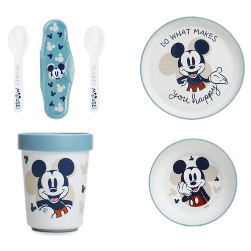 DISNEY BABY Mickey Mouse - Coffret Repas complet Mickey - Vaisselle Anti-Dérapante Compatible Micro-Ondes - Parfait Pour Les Enfants - À Partir De 10 Mois