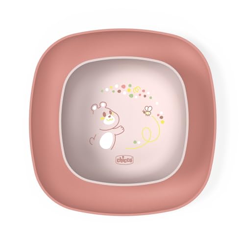 Chicco Coffret Repas pour Enfants, Set Repas de Sevrage avec 1 Assiette Plate et 1 Bol, 2 Pièces, Set plats empilables, gain d’espace, 12+ Mois, Rose